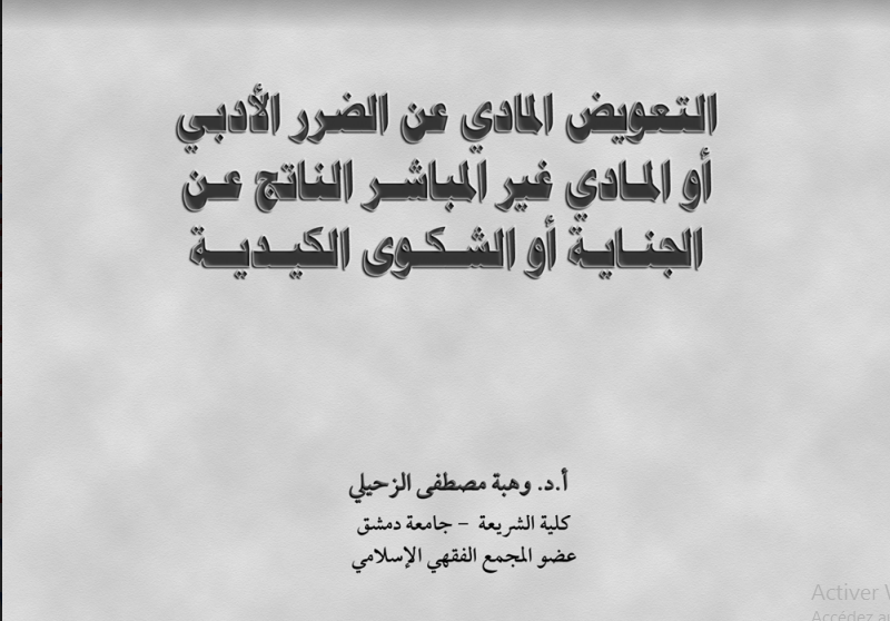 التعويض المادي عن الضرر الادبي أو المادي غير المباشر الناتج عن الجناية أو الشكوى الكيدية د وهبة مصطفى الزحيلي Pdf